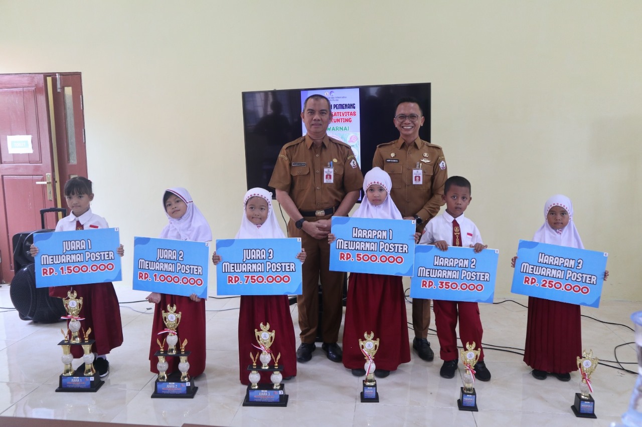 Secara rinci, bahwa nama pemenang lomba kreativitas cegah stunting tingkat Kabupaten Batola berdasarkan klasifikasi lomba, yakni lomba mewarnai juara 1 Janetta Avigail Sikome dari SDN Sidomulyo 1 Wanaraya, Juara 2 Alifa Rifda dari SDN Jejangkit Muara 1, juara 3 Felisha Arumi Bilqis (SDN Semangat Karya Alalak.
