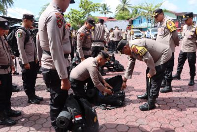 Kapolres Barito Utara, AKBP Gede Eka Yudharma, S.I.K., M.A.P., melakukan pengecekan langsung terhadap kesiapan personel dan perlengkapan yang akan dibawa dalam pengamanan tempat pemungutan suara (TPS) di Kabupaten Barito Utara. Kegiatan ini bertujuan memastikan kesiapan seluruh personel dalam mendukung pelaksanaan Pilkada Serentak 2024 yang akan segera berlangsung.