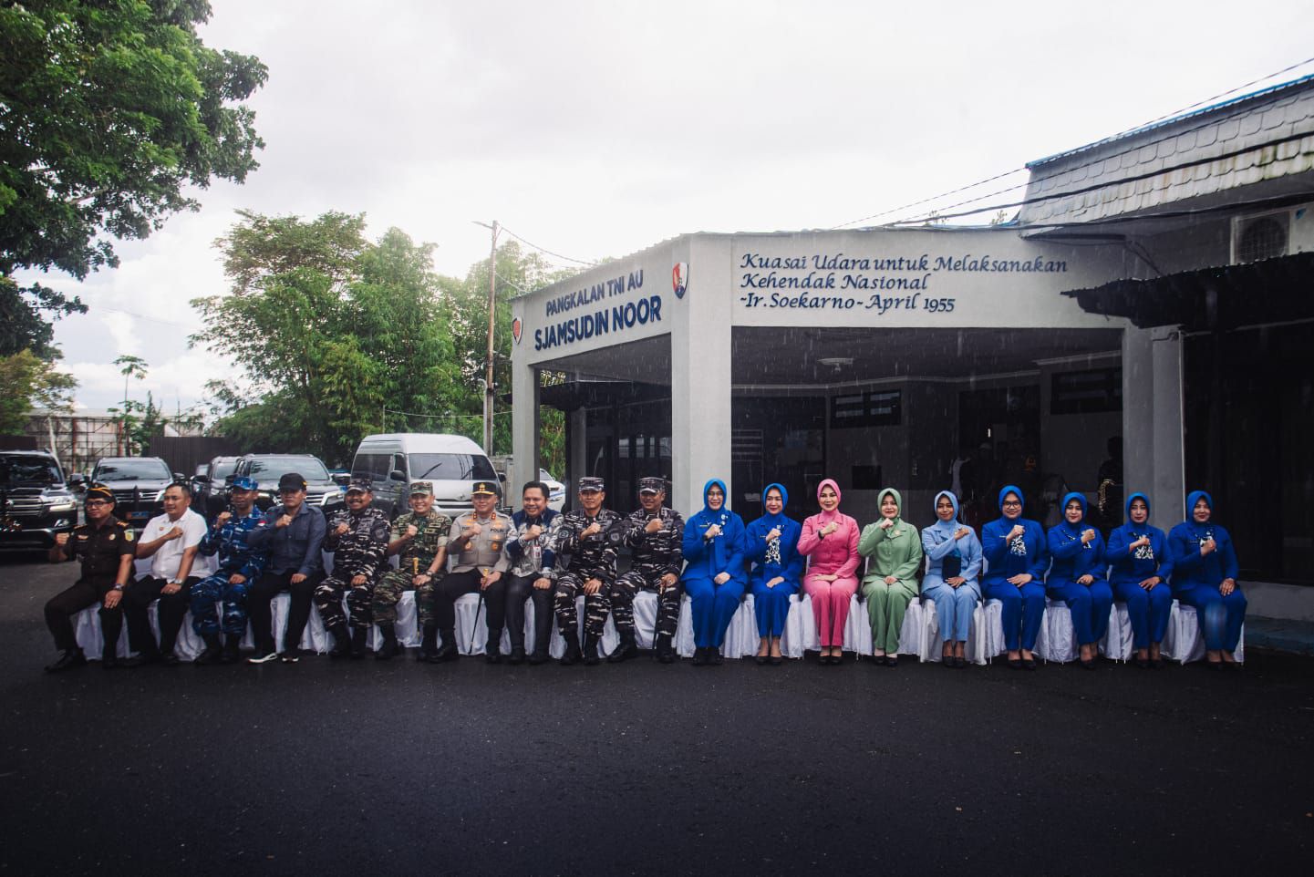 Setelah tarian, Panglima Komando Armada II beserta istri disematkan kain Sasirangan khas Banjar sebagai tanda penghormatan dan penerimaan dari masyarakat Kalimantan Selatan. Selanjutnya dilakukan sesi foto bersama di halaman depan VIP Room untuk mengabadikan momen penuh keakraban tersebut.