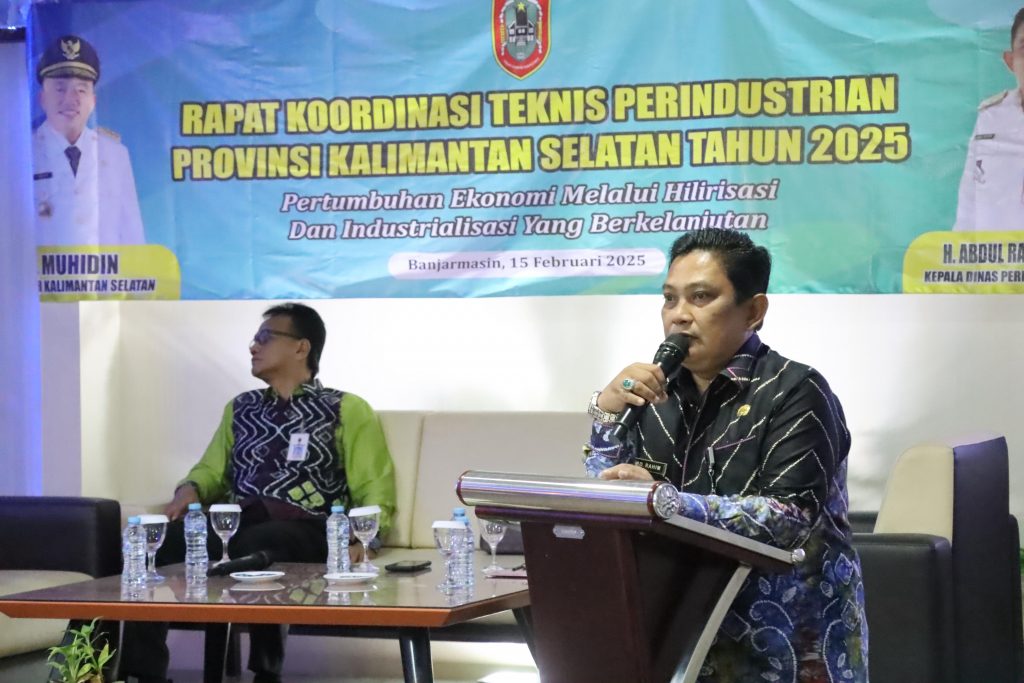 BANJARBARU, onlinekoranbarito.com – Dinas Perindustrian (Disperin) Provinsi Kalimantan Selatan (Kalsel) menggelar Rapat Koordinasi Teknis (Rakornis) Perindustrian Provinsi Kalsel Tahun 2025 dengan tema “Pertumbuhan Ekonomi Melalui Hilirisasi dan Industrialisasi yang Berkelanjutan”, di Banjarmasin, Sabtu (15/2/2025).