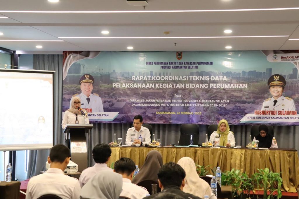 BANJARBARU, onlinekoranbarito.com – Pemerintah Provinsi Kalimantan Selatan (Kalsel) melalui Dinas Perumahan Rakyat dan Kawasan Permukiman Kalsel menggelar Rapat Koordinasi Teknis Data Pelaksanaan Kegiatan Bidang Perumahan dengan tema “Arah Kebijakan Perbaikan Rumah Tidak Layak Huni (RTLH) di Provinsi Kalimantan Selatan dalam Mendukung Visi dan Misi Kepala Daerah Tahun 2025-2029” di Banjarmasin, Rabu (26/2/2025).