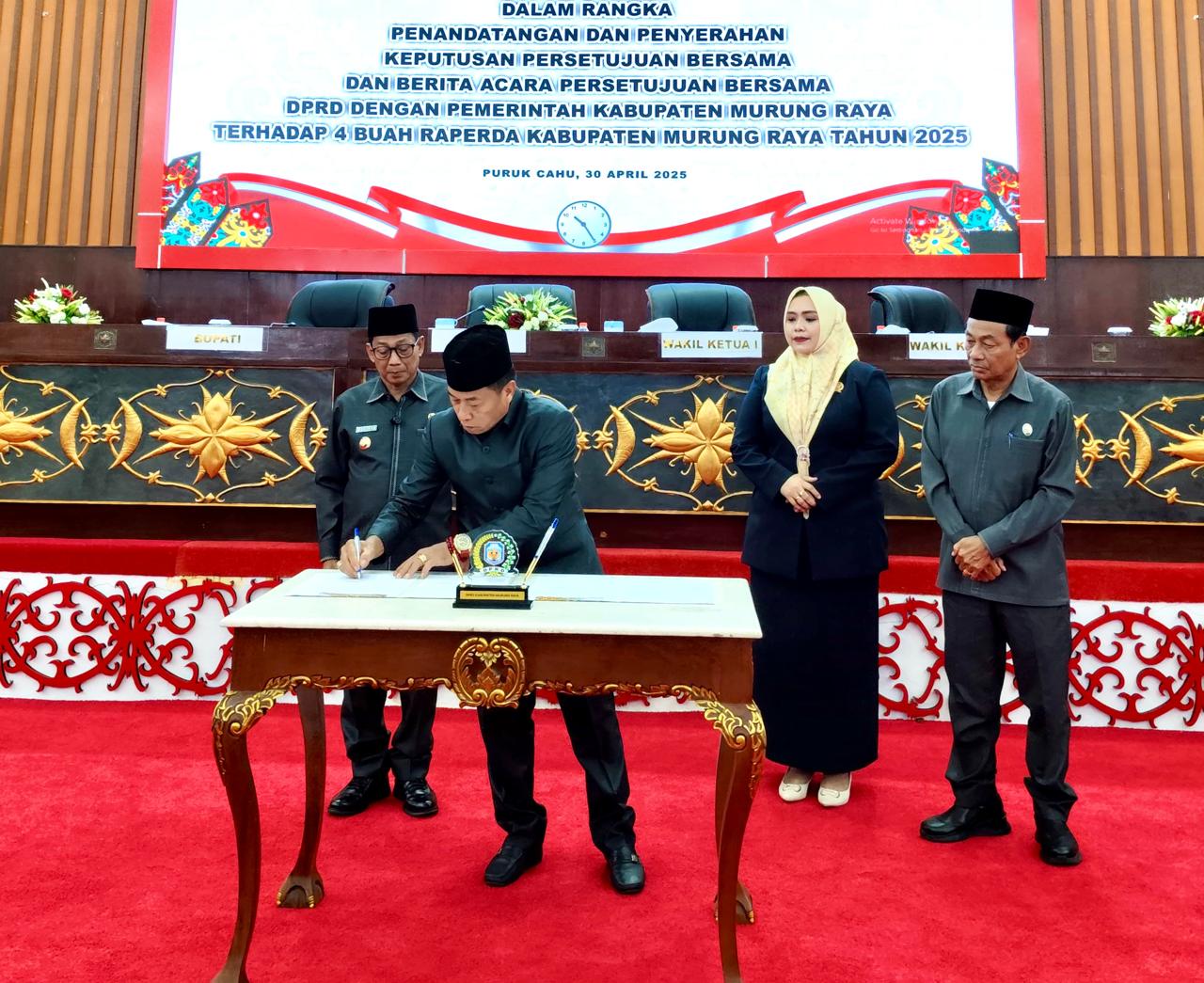 Penandatanganan keputusan bersama antara Ketua DPRD dan Bupati Murung Raya terhadap empat buah Raperda yang disetujui menjadi Peraturan Daerah ini menjadi dasar pelaksanaan kebijakan lebih lanjut di tingkat daerah.