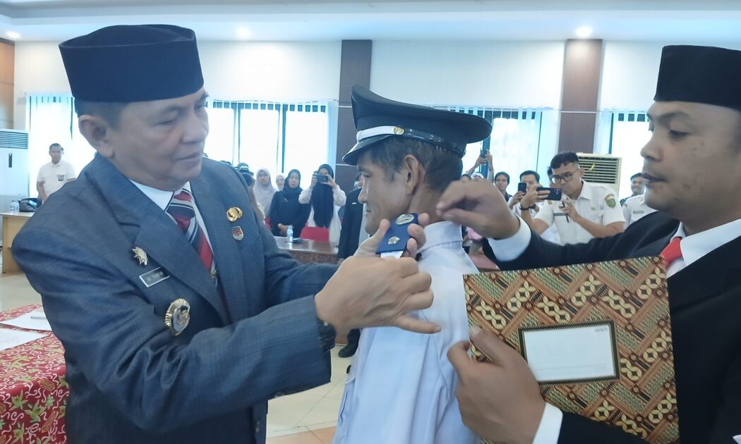 Prosesi sakral itu digelar di Aula Kantor Bupati pada Rabu (3/9/2025), disaksikan para pemangku kepentingan daerah, mulai dari Ketua DPRD Nursulistio, jajaran Forkopimda, Pj Sekda Misnohartaku, para camat, perangkat daerah, tokoh adat, hingga perwakilan masyarakat.