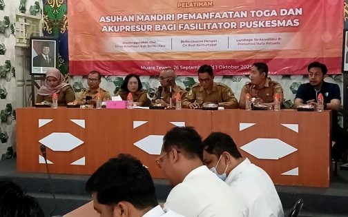 MUARA TEWEH, onlinekoranbarito.com – Lembaga pelatihan terakreditasi Primaed Nusa Persada bekerja sama dengan CV Rudi Bermartabat dan Dinas Kesehatan Kabupaten Barito Utara menyelenggarakan Pelatihan Asuhan Mandiri Pemanfaatan Tanaman Obat Keluarga (TOGA) dan Akupresur bagi Fasilitator Puskesmas di Aula Dinas Kesehatan, Senin (29/9/2025).