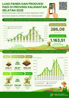 Selain perkiraan tersebut, Mukhanif pun menyebutkan Produksi padi di Provinsi Kalimantan Selatan sepanjang Januari–September 2025 diperkirakan sebanyak 1.049,64 ribu ton GKP, atau mengalami kenaikan sebanyak 92,66 ribu ton GKP (9,68 persen) dibandingkan Januari–September 2024 yang sebanyak 956,98 ribu ton GKP.