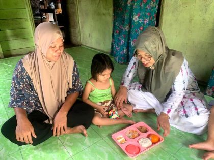 Bantuan PMT berupa makanan bergizi seperti susu, telur, buah, serta makanan siap saji lainnya diberikan setiap hari, bekerja sama dengan Puskesmas dan pemerintah desa setempat untuk memastikan distribusi tepat sasaran.