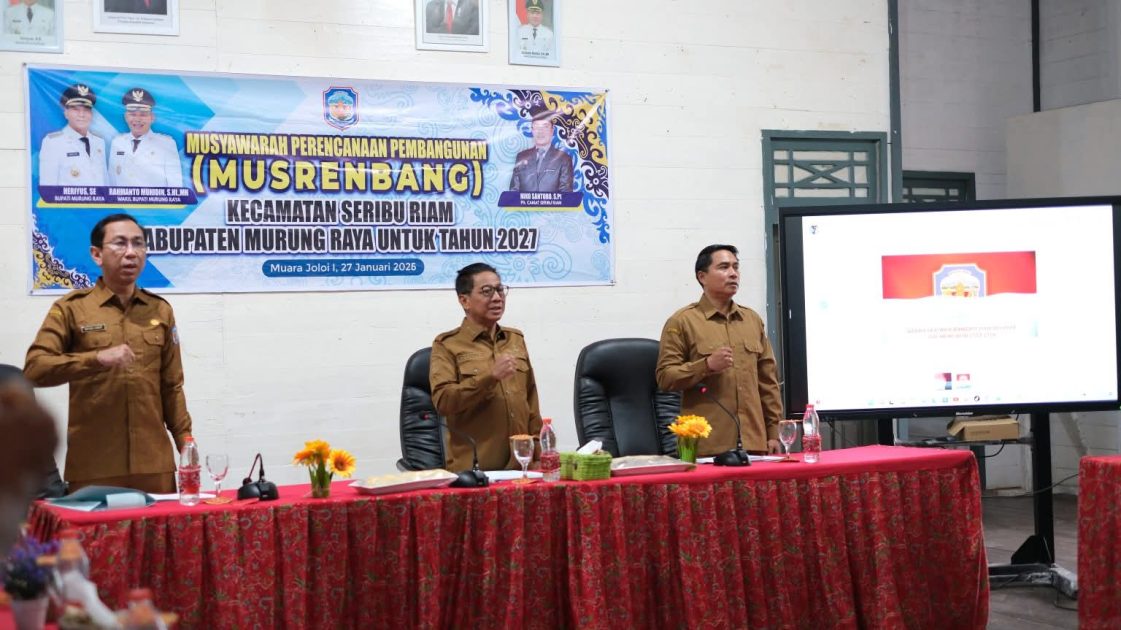 PURUK CAHU, onlinekoranbarito.com – Bupati Murung Raya (Mura), Heriyus, secara resmi membuka kegiatan Musyawarah Perencanaan Pembangunan (Musrenbang) tingkat Kecamatan Seribu Riam yang dilaksanakan di Kantor Kecamatan setempat, Selasa (27/1/2026).